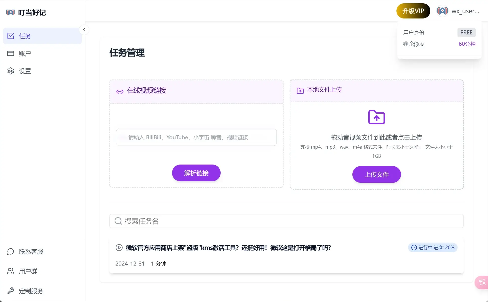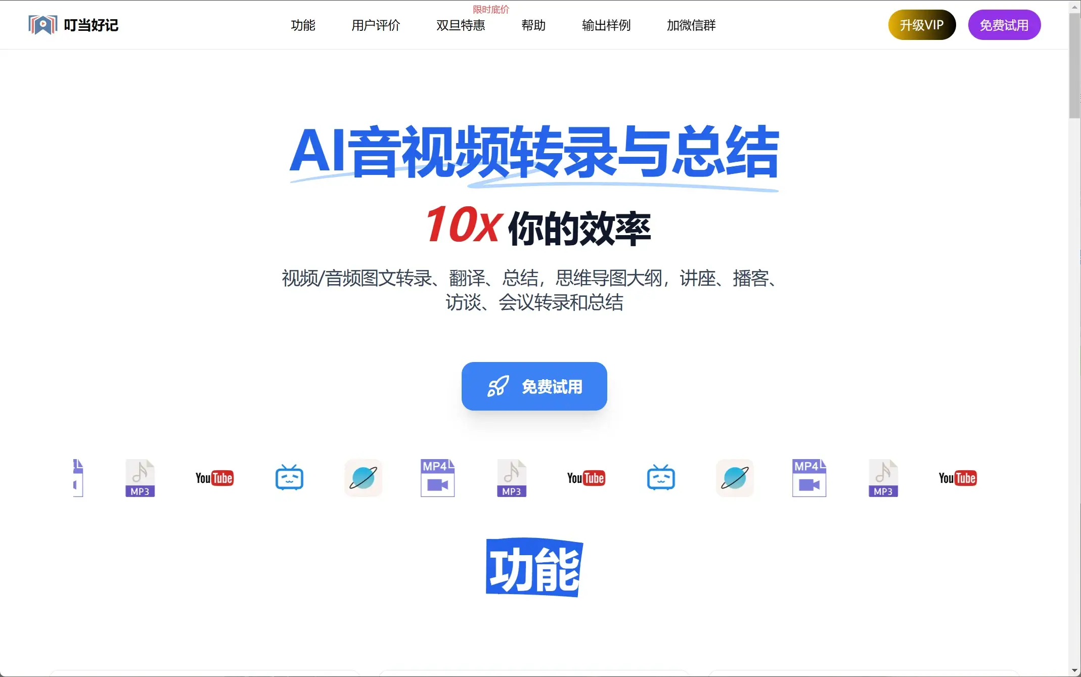叮当好记 是一款AI音视频转录与总结 工具,支持视频/音频图文转录、翻译、总结,思维导图大纲。