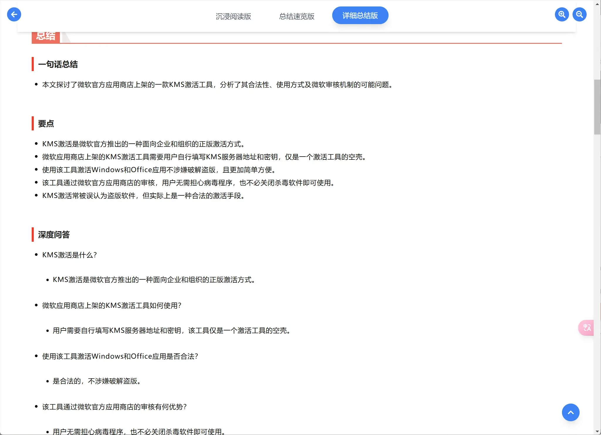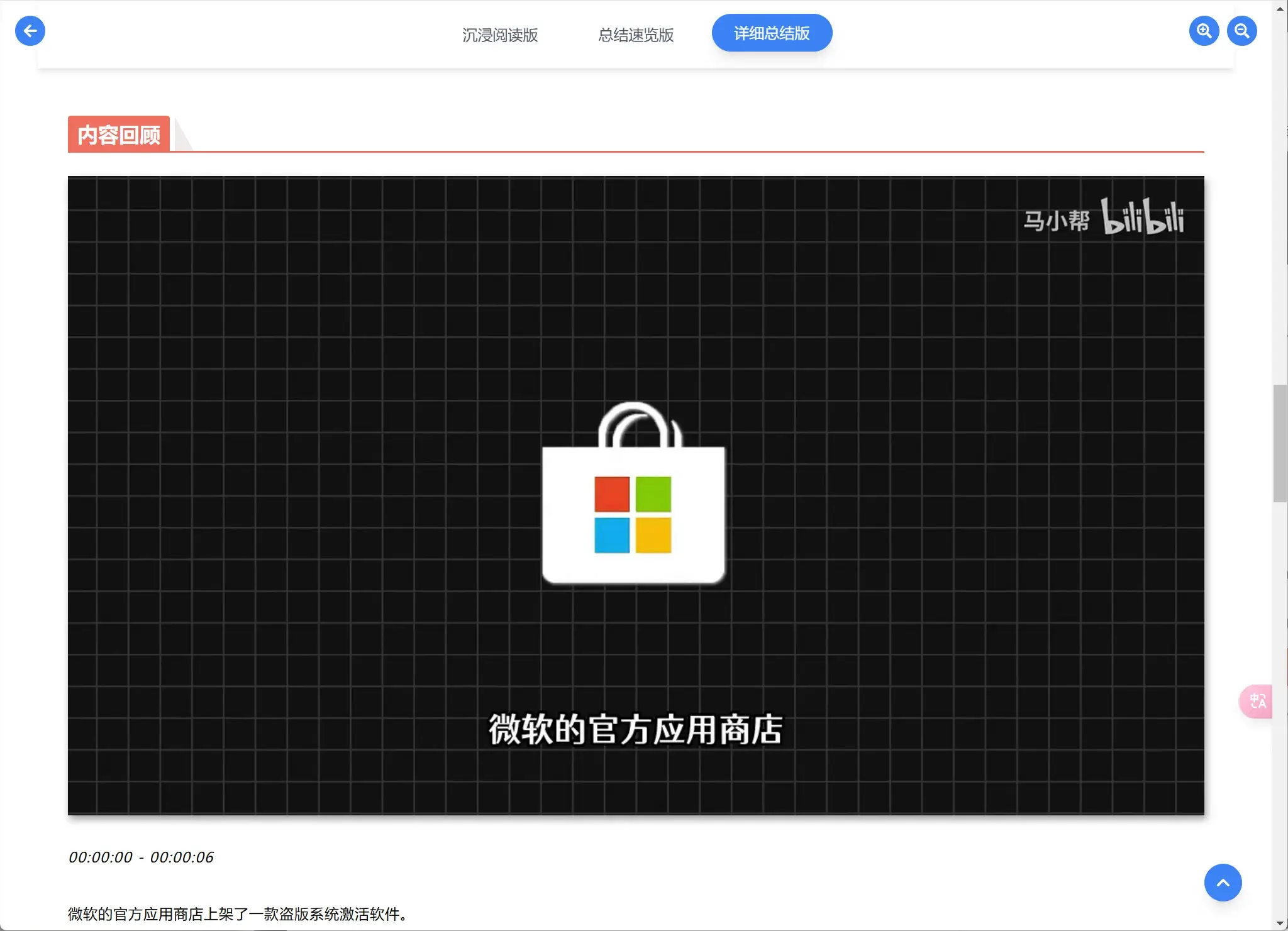 提供全文和分章节两种维度的内容总结。全文总结包含结构化大纲、思维导图、核心观点提炼和关键词汇提取。章节总结则配备关键画面截图、精选问答和深度思考点,帮助您更好地理解和消化内容。