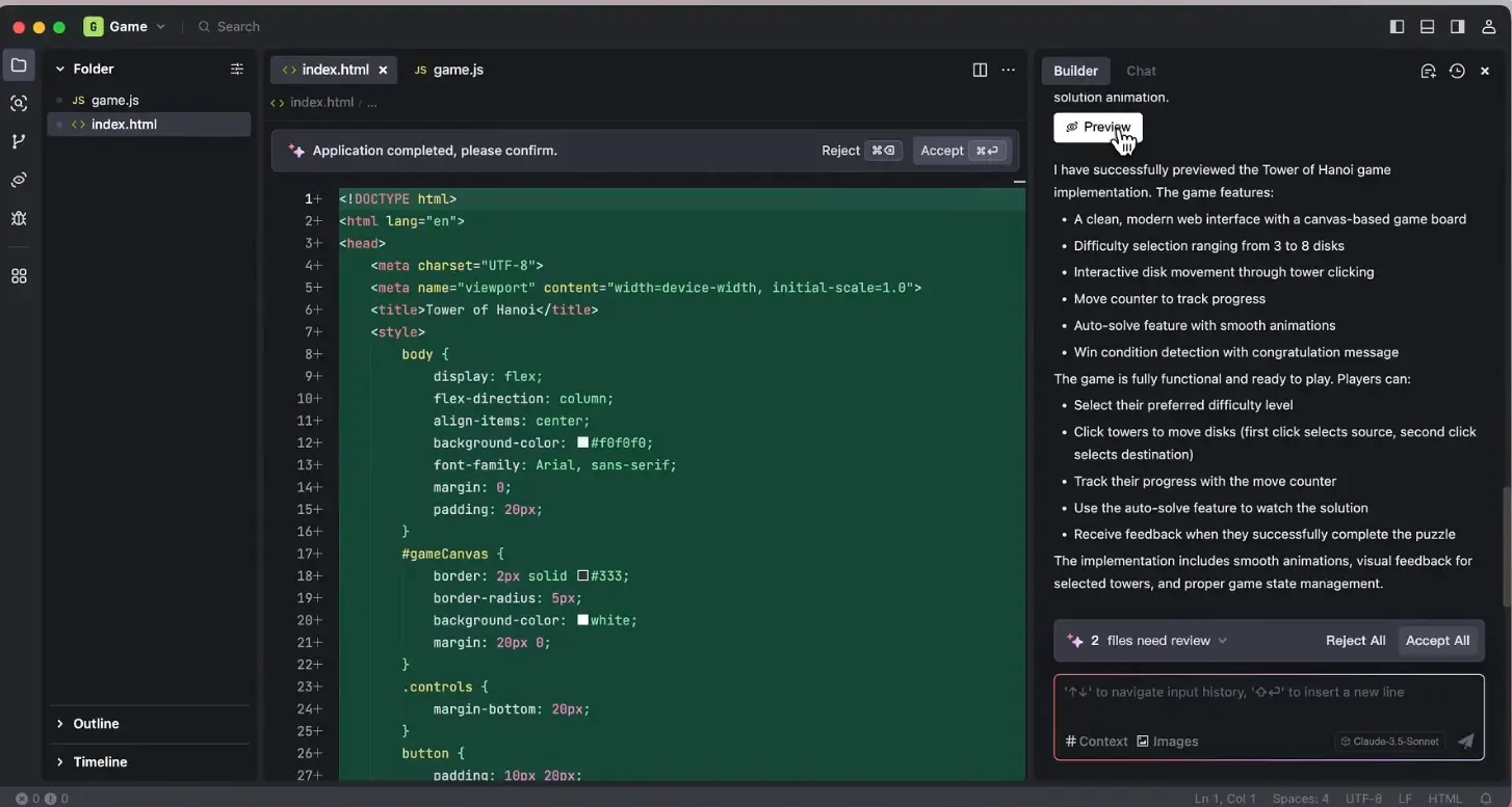 国际版集成 GPT-4o 和 Claude-3.7-Sonnet 等大模型,支持自然语言指令生成完整代码项目。