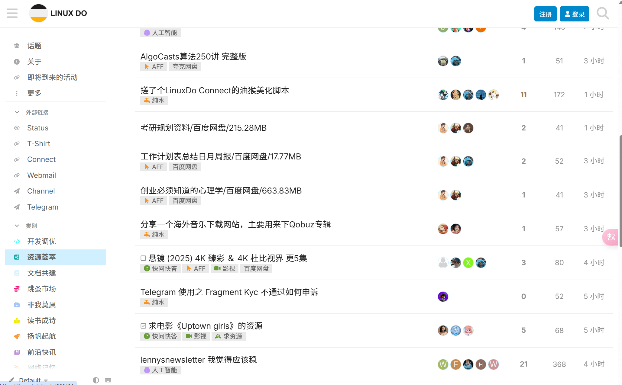 除了AI和开发相关的内容,它还有一个资源荟萃板块,该板块包含了包括软件分享、开源仓库、视频课程、书籍等内容的分享。非常适合普通用户来这里找一些好玩的资源。