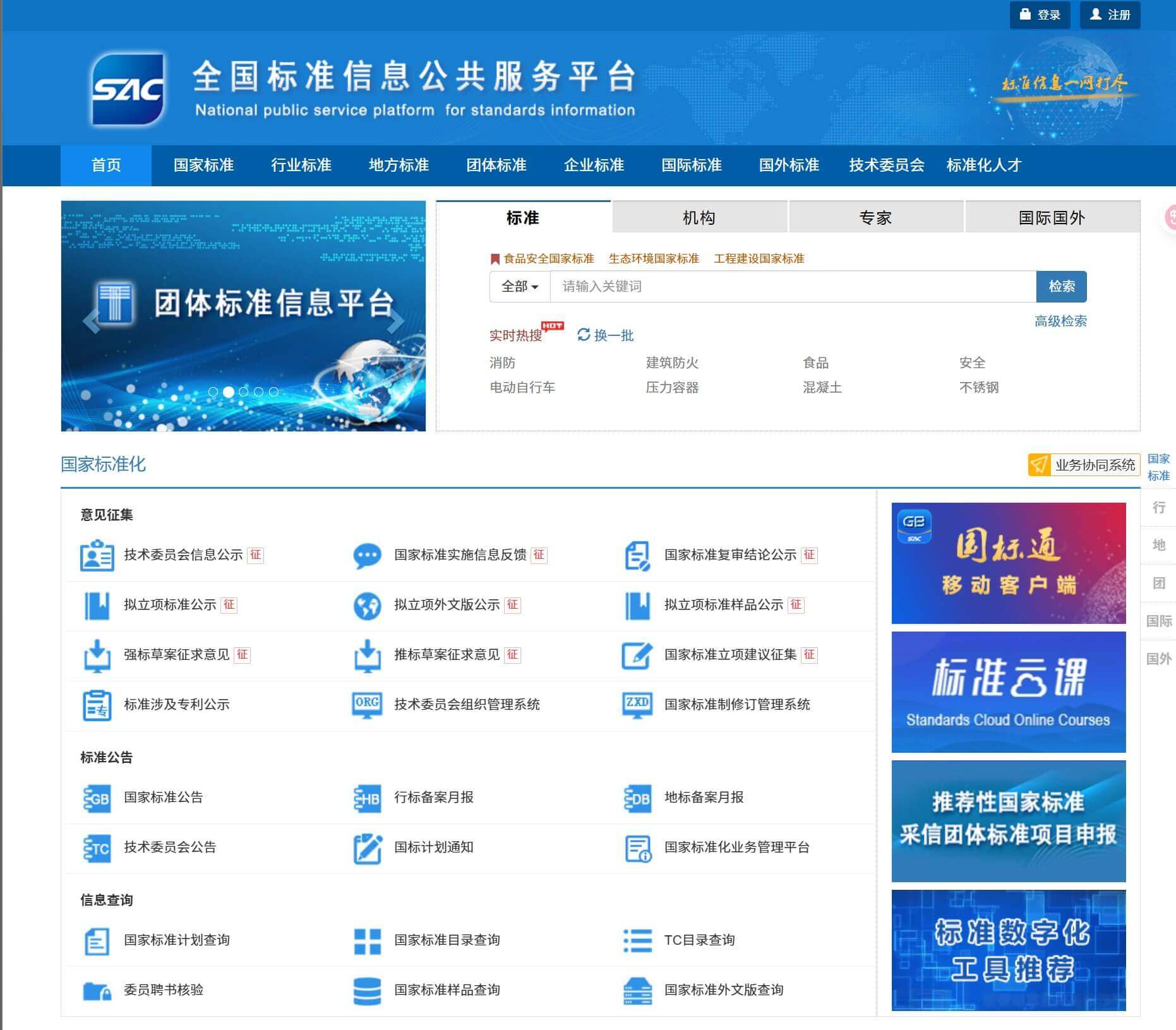 该网站提供国家标准、国际标准、国外标准、行业标准、地方标准、企业标准和团体标准等标准化信息资源的统一入口,为用户提供”一站式“服务
